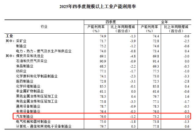 一般来说,一个行业的产能利用率高于 80% 是属于健康水平,但国内汽车行业实际长期低于 75% 。