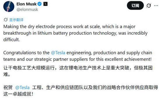如果这次真的能成,可以说不光是特斯拉开创了新技术,整个电池行业都有了一个大突破。