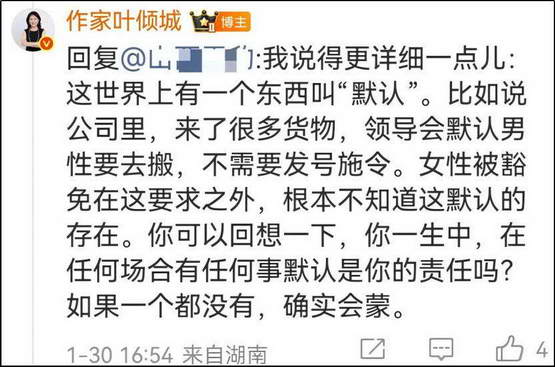 她觉得,有种东西叫默认,公司里默认男的来搬重物,都不需要领导发号施令。