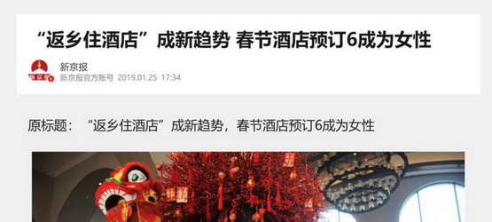 疫情前,已经有很多女性消费者选择春节住酒店