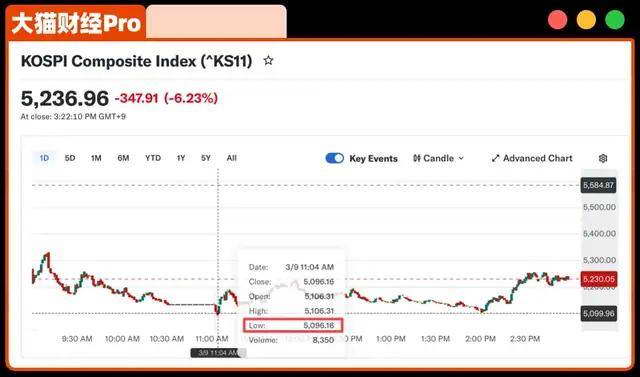 然后,原油暴涨,美国原油和布伦特原油盘中都突破了 111 美元 / 桶,涨幅一度超过 20%,亚太股市大跌,日韩领跌,韩国的 KOSPI 一度下跌 8.75%。