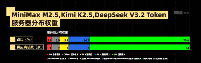 比如 MiniMax M2.5 的 Token 服务器,地址就基本以美国为主。而三个头部国产模型,只有 DeepSeek 一家有一个明确的国内服务器。