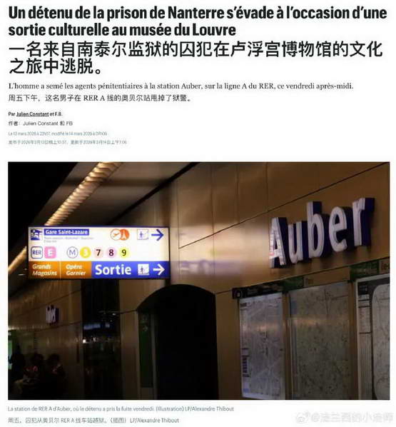 在地铁换乘的时候,其中一名犯人挣脱狱警跑了,没几秒钟就消失在茫茫人海中。然后警察懵逼了,也没追,取消参观卢浮宫,又带着剩下的犯人坐地铁回监狱了。