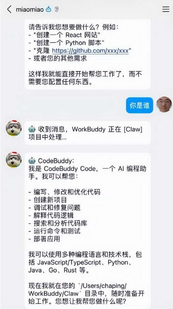 而且,这玩意通讯工具覆盖面也是最广的 ——QQ、飞书、钉钉都能接,然而,谁都没有想到,在 QClaw 还在内测的时候,WorkBuddy 就提前上线了接入个人微信的功能。