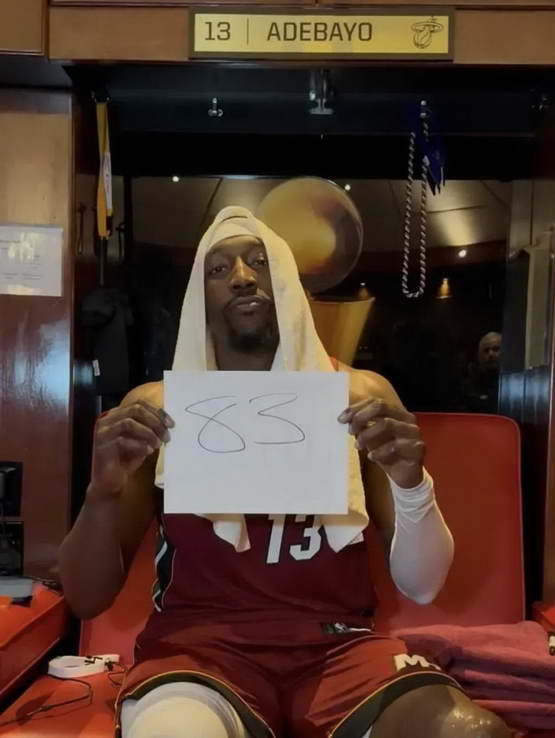“感谢我的教练,我将把这一刻视为职业生涯最佳,这格外特别,因为这是在我的主场。” 赛后,阿德巴约感谢了教练,也将致敬献给了名宿科比,“对我来说,我一直在想科比会说什么,我得到 83 分超过他,我就会想,‘他会对我说什么?’因为我一直都想和他聊聊天。他可能会说,‘再来一次’。能和自己从小崇拜的人在一起,真是太不可思议了。”