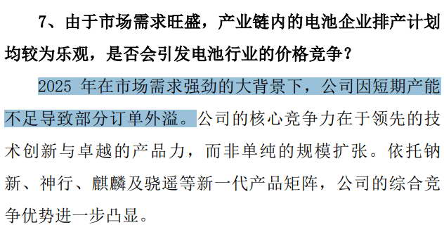 宁王更是在电话会上大方承认,“公司因短期产能不足导致部分订单外溢”。