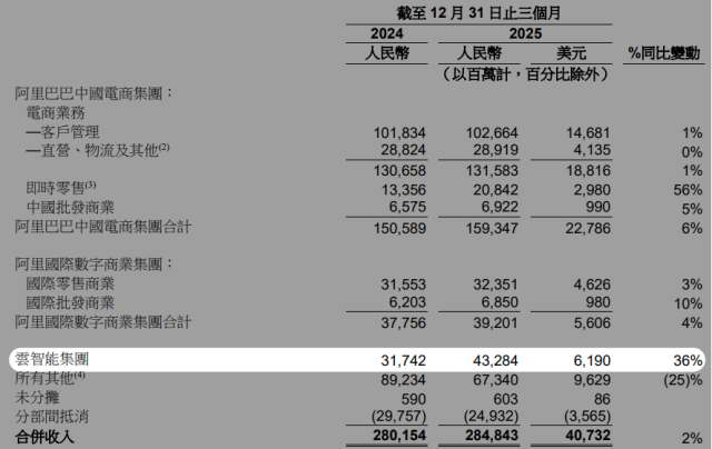 从财报来看,云智能集团整挺好,收入 432.84 亿元,同比增长加速至 36%,AI 相关产品收入连续第十个季度的三位数同比增长。