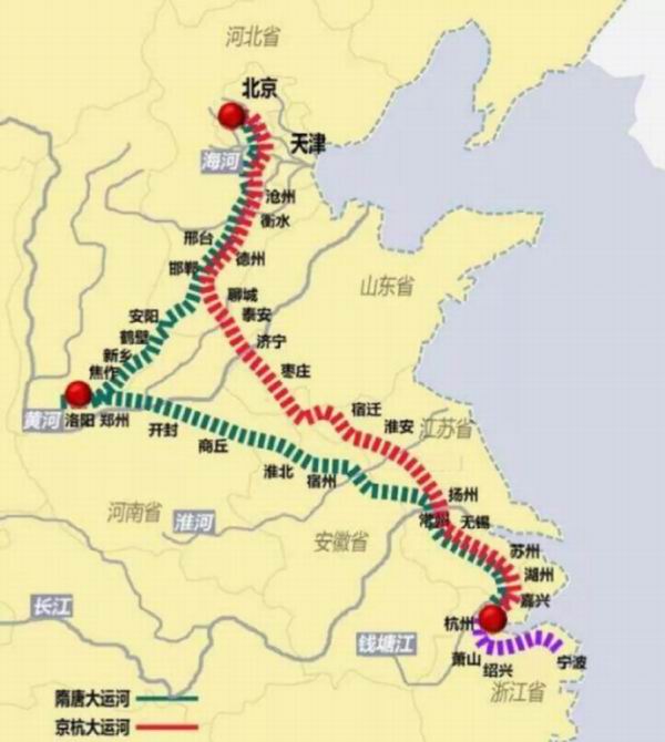 元朝利用之前隋唐大运河的部分河段,重点打通了山东区域,形成了我们现在所说的京杭大运河。其总共可分为七段,即北京 - 通州,通州 - 天津,天津 - 临清;临清 - 台儿庄;台儿庄 - 淮阴;淮阴 - 扬州;镇江 - 杭州。