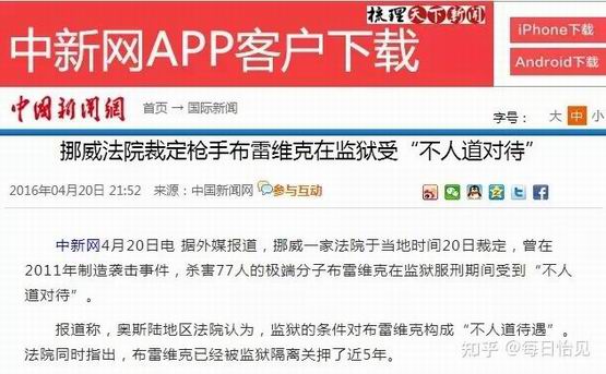 2016年的奥斯陆法院表示:布雷维克胜诉,坚决捍卫布雷维克的人权。