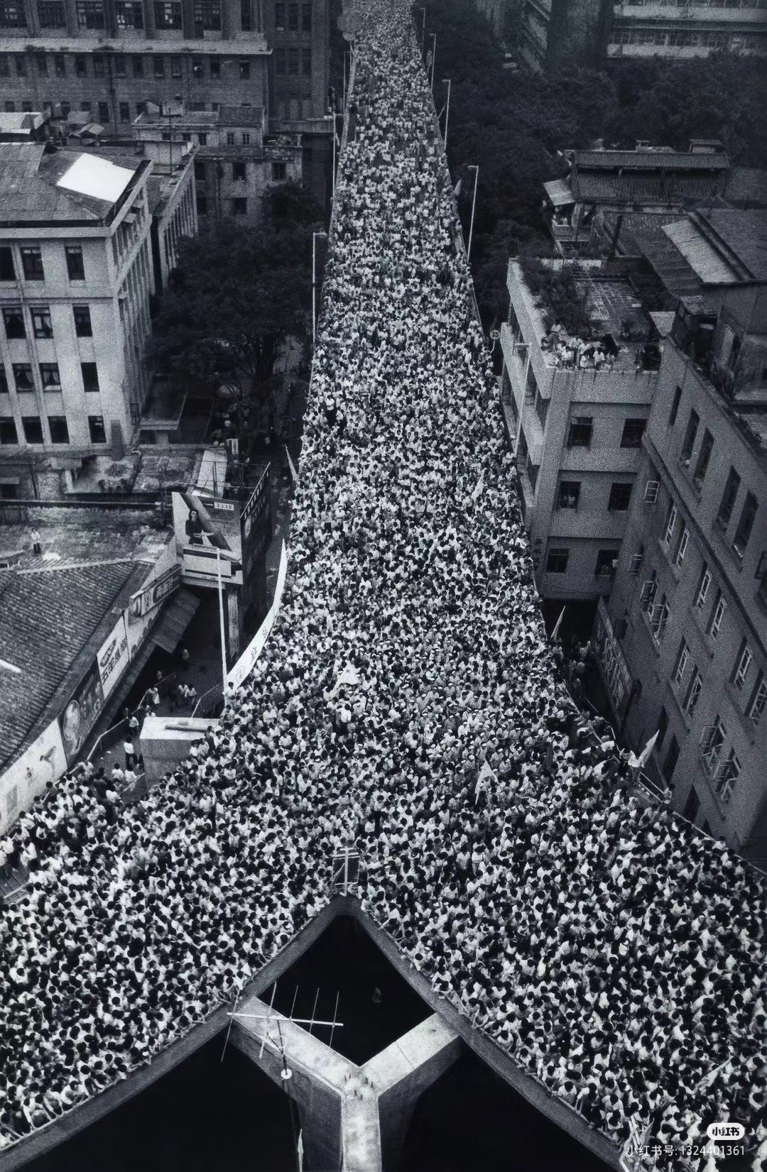 1988年,广州街头,骑车上班的人和川流不息的人群。