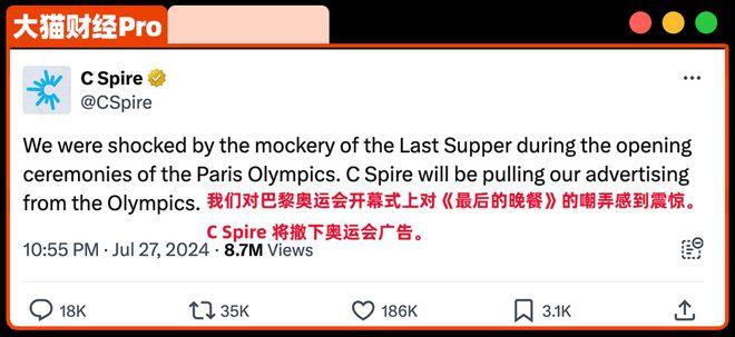 美国的电信运营商 C Spire 已经从奥运会上撤下了广告,用户们拍手叫好。