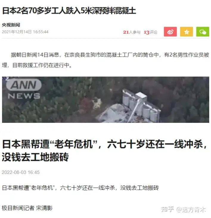 而在隔壁日本,有些黑帮份子到了六七十岁甚至还在一线冲杀,没钱就去工地搬砖,甚至还出现了2名70多岁工人在工地干活时跌入5米深混凝土身亡的新闻。