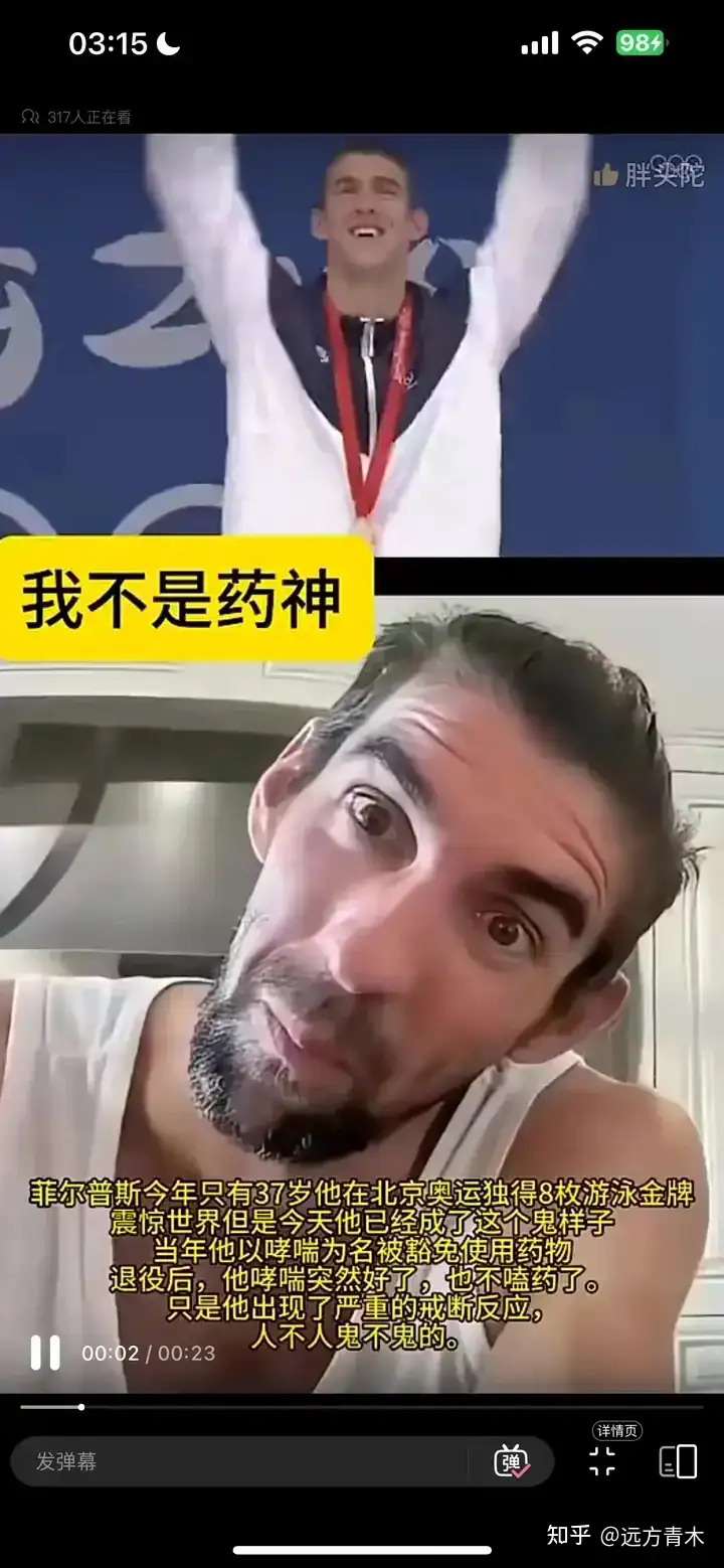 结果连菲尔普斯这样的顶尖选手,以透支损坏身体为代价,在获得用药豁免权后大吃特吃各种药物,最后游出来的成绩比中国的潘展乐足足少了1秒多那么离谱。