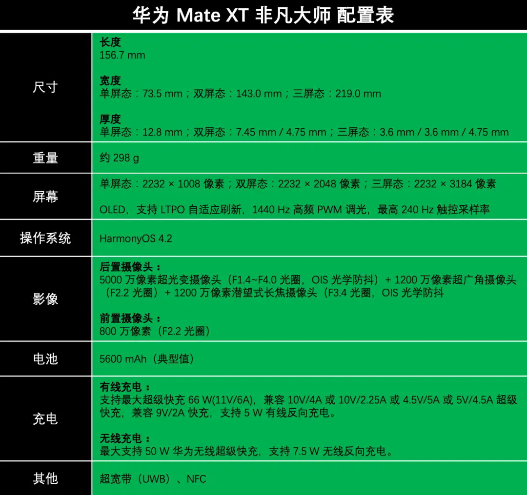 考虑到三折的内部结构会更复杂,.Mate.XT.在机身厚度没增加太多的情况下,还能增大电池容量,可以说相当了不起了。