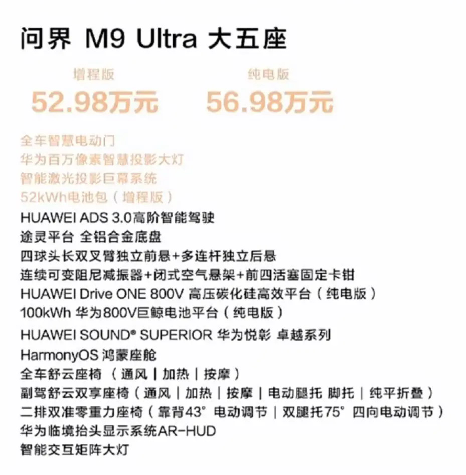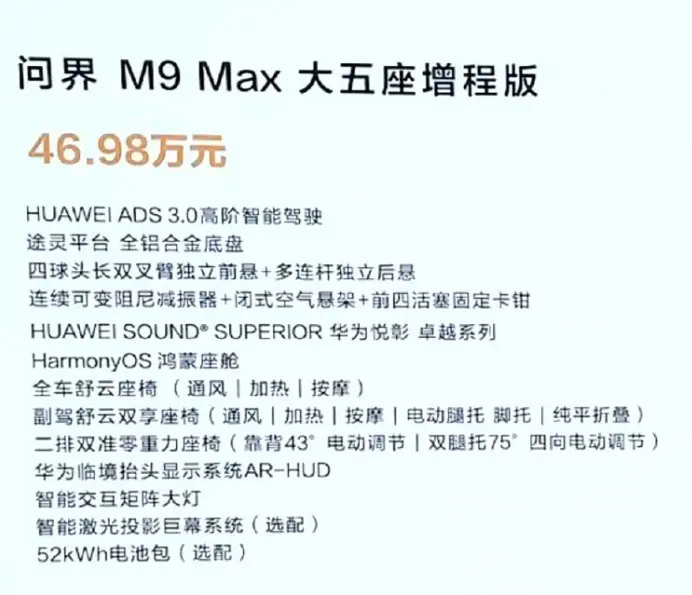除了五座车型,问界.M9.还推送一次大更新,五座、六座都有。