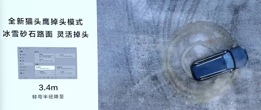 如果是在冰雪砂石路面,转弯半径还能做到只有.3.4m.,非常灵活。