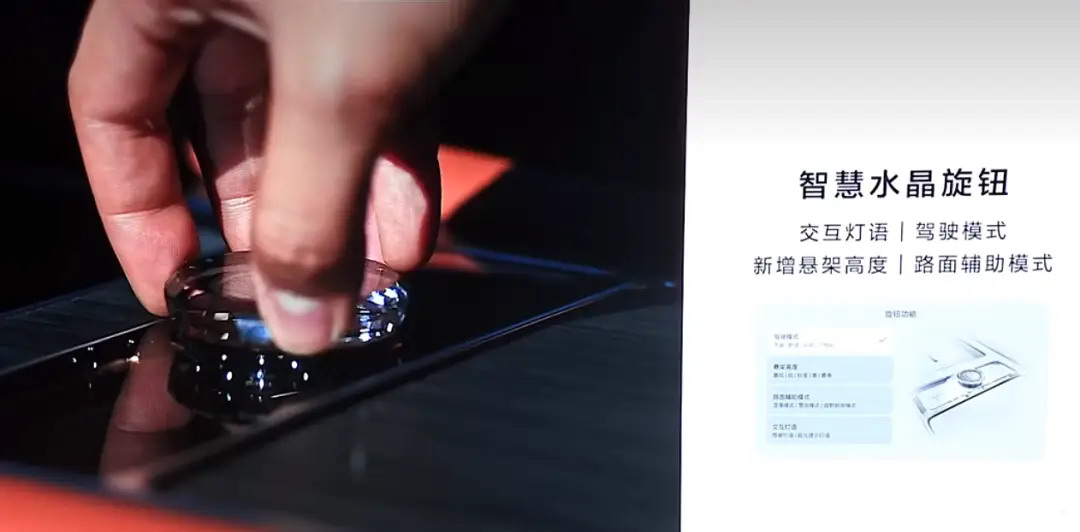中控旋钮原来要么调灯语,要么调驾驶模式,现在还可以调节悬架高度和路面辅助模式。