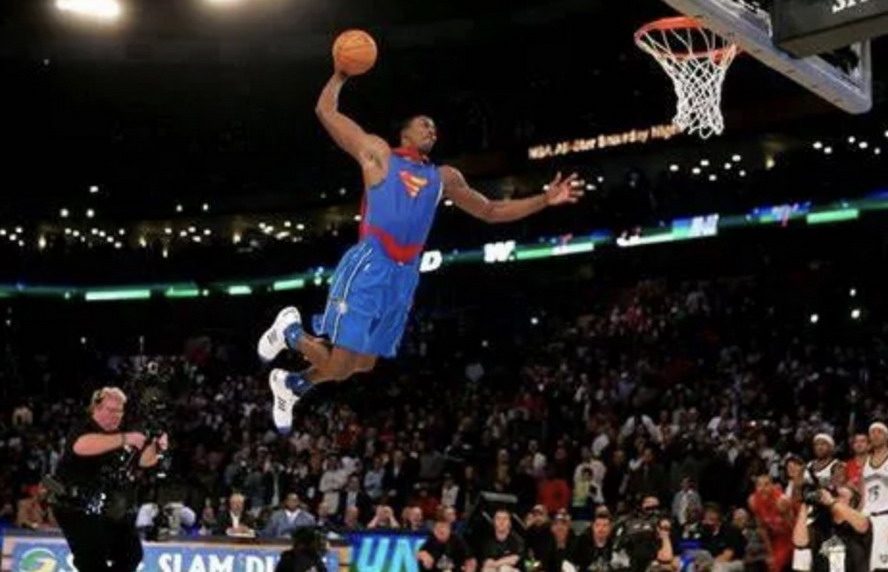 之前德怀特职业生涯顺利时,场外也是个有名慈善家。他像个大男孩似的穿超人装扣篮时,看起来真是够卡通。