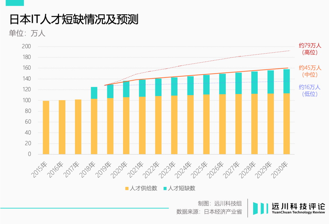 然而,IT.人才的短缺,恰恰是日本产业界近三十年来都难以忽视的问题。早在.2000.年,日本软件进口额就达到出口额的.102.倍。日本经产省预计,到.2030.年,日本.IT.人才缺口最多将达到.79.万人。