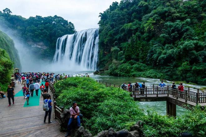 ▲在黄果树瀑布前排队打卡的游客。图 / 视觉中国