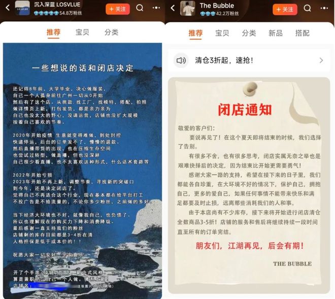 拥有 131 万粉丝、均价 200 元左右的淘宝女装店 “大 C 来也” 店主大 C,在关店时写了一封闭店通知。她说自己从 2015 年开店,一路 “摸爬滚打”“有过高峰也有过低谷”,曾在 2017 年 ifashion 淘宝商家大会上获得新锐女装奖项,尝试过甜美风、港风、纯欲风等不同风格,但是这几年一直处于亏损状态,“支撑到现在已经很不容易”。