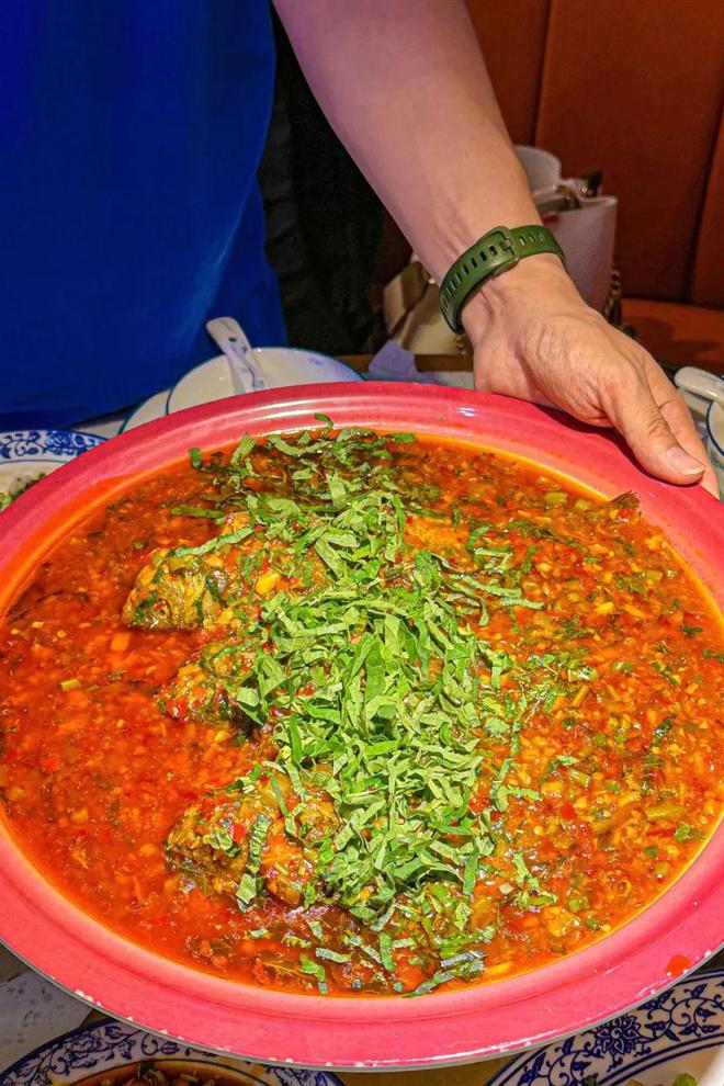 被调料铺满的干烧鱼香气扑鼻,用筷子轻轻拨开葱段和辣椒,夹一块鱼肚上的嫩肉,蘸一下旁边的汤汁入口,感受酥脆的表皮与嫩滑鱼肉的丰富层次,轻轻一抿,鱼肉在嘴里化开,咸香回甜的滋味萦绕在舌尖,薄薄芡汁裹挟着复合的鲜香滑入口腔,来自川渝的热情在此刻变得鲜活而立体。