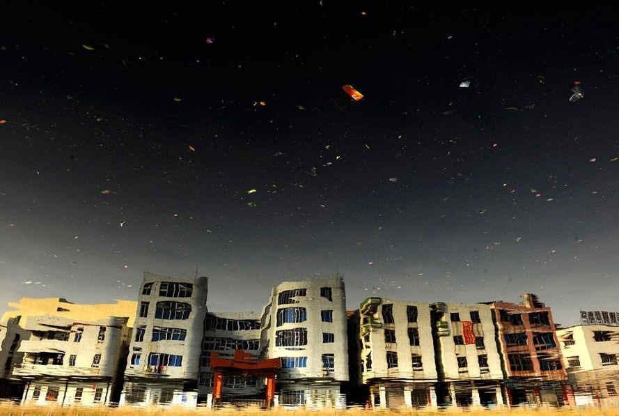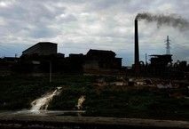 2009年8月21日,在云南曲靖珠江源头,化工厂的烟囱不断冒出浓烟,废水随意排放。