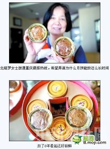 提起中国产品,好多外国人都会摇头,好像我们的质量就摆不上台面似的,就比如这个月饼,多少年来,我们都没有打开国外市场,现在至少可以证明中国月饼的防腐剂的质量过硬! 放置了8年的月饼,看上去还非常新鲜,油光闪闪,这说明保存方法也是想当科学,化学添加剂加得到位。厂家该积极打开思路,将这种方法研制成美容、日用洗发方面,扩大这种防腐剂的适用范围,积极创造效益。