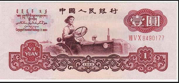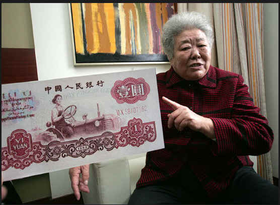 1962年4月,我国发行的第三套人民币,面值为壹元的人民币图案是一位英姿飒爽的青年女拖拉机手正在耕作。她是新中国第一位女拖拉机手,1950年被选为全国劳模,受到了毛主席等国家领导人的亲切接见,她就是哈尔滨市农机局原总工程师、教授级高级工程师梁军。当年这位飒爽英姿的女模范如今已年过八旬。图为面值为壹元的人民币图案。
