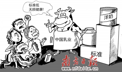 于是有人质疑目前中国每年从国外进口奶粉达到14万吨以上,如果转化为液态牛奶来计算,则达到相当的数量,为什么国人对进口牛奶趋之若鹜?难道那些动辄“国情”说的专家们不应该反思吗?中国人不可能不消费大量的牛奶,这是现代社会的一种必然消费选择,如果动辄以“国情”来推脱自身存在的问题,其实也改变不了国人的消费选择,从某种意义上来说,这其实就是在变相的打压中国自己的牛奶市场。说一千道一万,你制定出如此低劣的置之脑后牛奶标准,只能从根本上打压、打击国产牛奶的市场,尤其是目前国产奶粉自三聚氰胺事件之后,整个行业并未达到整顿的效果,一些大企业还没有从中吸取教训,问题奶粉事件仍层出不穷,另一方面竞争也是非常恶性的情况下,市场的行情显示,城市居民选择进口奶粉的热情,根本就不可能考虑如何保护中国奶农的利益,这是市场选择的结果,那么、专家所谓70%的奶农将杀奶牛,又怎么可能改变这一态势呢?即使杀光奶牛,最多就是消费者花更多的钱选择进口奶粉。为了自身的健康考虑,难道还有别的什么选择呢?