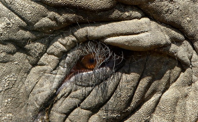 这张拍摄于2010年4月7日的照片,显示了马戏团里一只大象的眼睛和皮肤,这只大象是在德国柏林看到的。