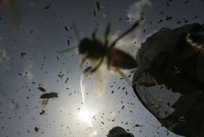 2010年4月19日,巴勒斯坦养蜂人正在加沙地带(Gaza Strip)难民营附近的一个养蜂场检查蜂箱。
