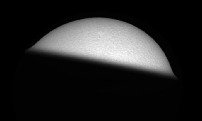 从美国宇航局最近发射的太阳动力学观测卫星拍到的这张图片上可以看到,地球遮住了太阳,使它看起来好像是被压扁了。这颗卫星上的日震及磁场成像仪的视线被地球挡住时,它进行了一系列调整。在阴影的边缘,太阳的形状发生了弯曲,这一现象是由地球大气层反射阳光造成的。