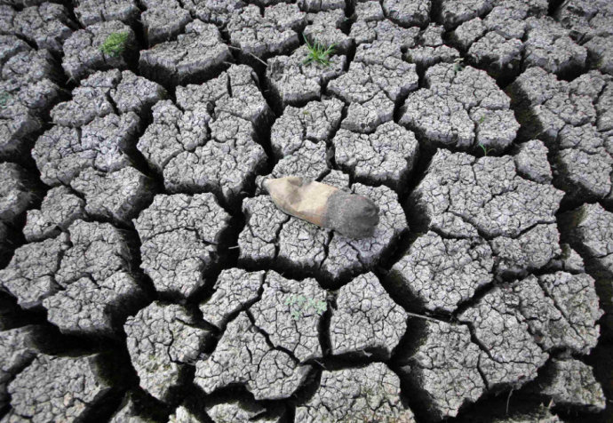 2010年4月20日拍到的这张照片显示的是,一只废旧塑料瓶静静地躺在尼加拉瓜首都马拉瓜北部大约59公里处的Las Canoas湖床上,这里已经干涸,地面上裂开很大的大口子。由于严重干旱,这个湖的水面已经下降到危险水平。