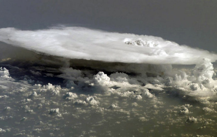 2010年4月22日,非洲大陆上空堆满浓密的积雨云。这种云会单独形成,或沿着飑线的冷锋形成。这种高能风暴常伴有大雨、闪电、大风和龙卷风。