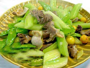 1. 烹制快结束时放盐的菜:烹制爆肉片、回锅肉、炒白菜、炒蒜薹、炒芹菜时,在旺火、热锅油温高时将菜下锅,并以菜下锅就有“ 啪”的响声为好,全部煸炒透时适量放盐,炒出来的菜肴嫩而不老,养分损失较少。