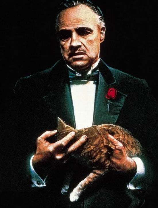 教父把猫放在了书桌上。特别好,这是一个给人压迫感的动作,代表自己的气愤。