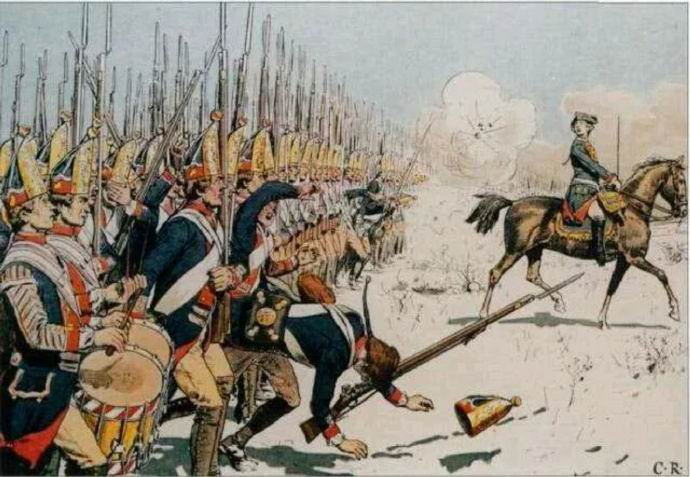 这种看都没看到目标就开枪的方式,听着很傻,但是当时非常时髦,直到后来改变了行军方式,士兵们不再挤成一坨,这种作战方式才被淘汰。