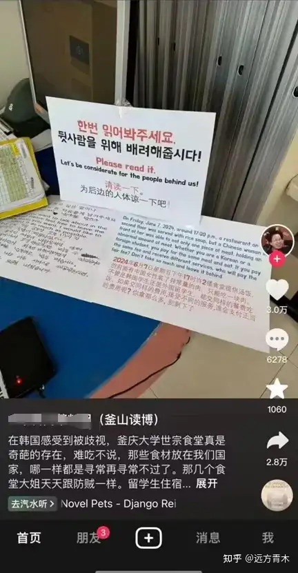这几天有个在韩国釜山大学读书的女生吐槽自己被歧视,因为大学食堂直接用韩文英文和中文公开通知,要求2024年6月7日在食堂私自多拿了肉吃的中国女生以后注意,每顿晚餐只准拿一块肉,所有学生都一样,禁止多拿。