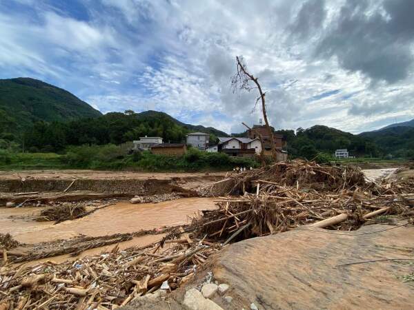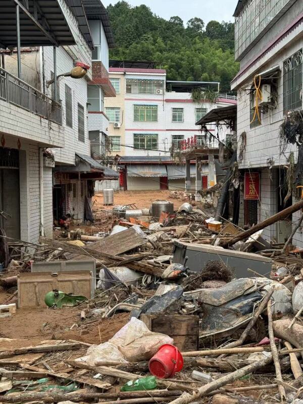湍溪村,街道堆满淤泥和被洪水冲出的杂物。