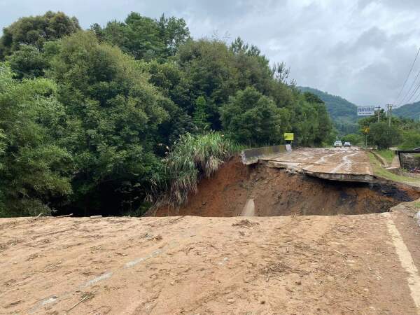 其实桥面已看不到了,上边盘踞着暴雨冲刷下来的枯木、断枝,还有两棵被连根拔起的树,笔直地插向天空。直升机不时越过这截在广东梅州平远县境内的残桥——那天是6月18日,梅州暴雨过后的第二天,当地平远县、蕉岭县等多个县镇、村落的道路遭遇滑坡,乃至断裂,成为“孤岛”,直升机是“入岛”救援的主要方式之一。
