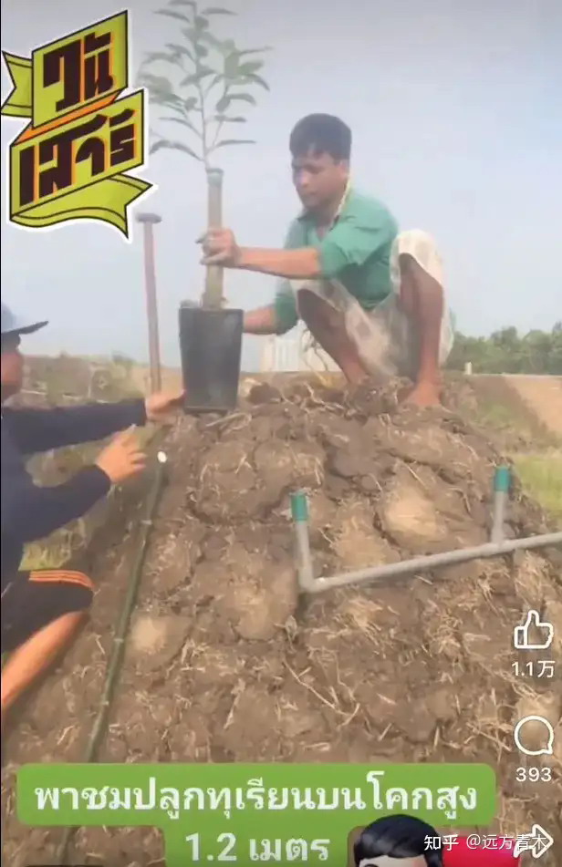 为了能把稻田改造成榴莲种植园,越南的农民为榴莲堆起了1到2米的土丘,只为了降低土壤的含水量,防止雨季把榴莲幼苗给活活淹死。