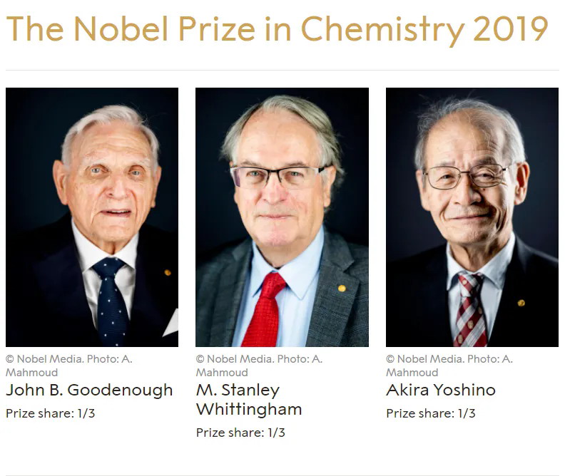 尽管日后锂电池技术进展飞快,应用场景也开始多元化,但基本结构却并没有本质性变化,所以在2019年,瑞典皇家科学院授予古迪纳夫、惠廷汉姆、吉野彰诺贝尔化学奖,因此三人也被称为“锂电三杰”。