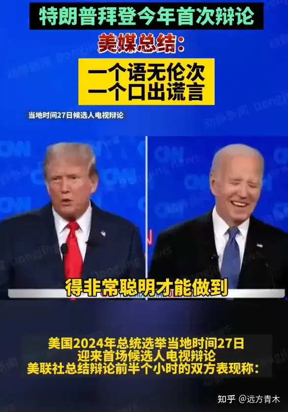 拜登固然老年痴呆了,但特朗普也被认定为满嘴谎话,这次特朗普在电视辩论中不是在一堆真相中夹杂谎话,而是在一堆谎话中夹杂真相,被美国媒体认为是撒谎精。
