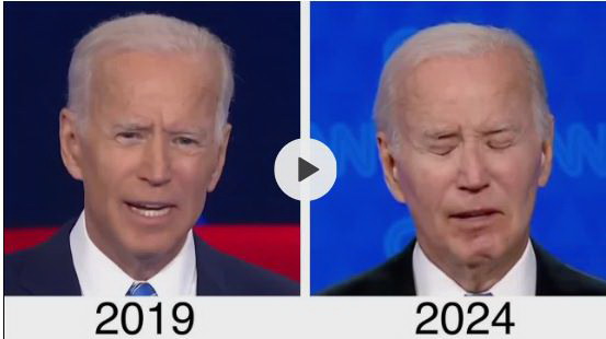 2019年的时候拜登也很老,但至少在演讲的时候精气神都还在,而2024年的拜登已经被彻底抽走了精气神。