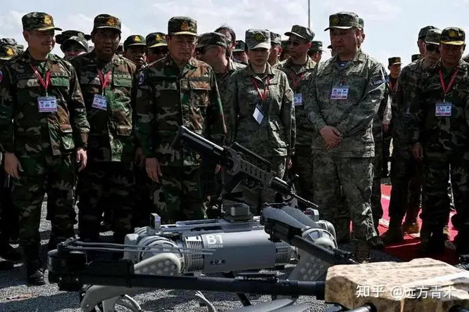 事实上这些背着枪的机器狗是我们和柬埔寨进行联合军演的时候,带出去给柬埔寨的军人们开开眼的,是给柬埔寨看的而不是给美国看的。