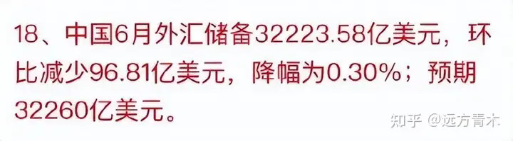 但在获取如此天量贸易顺差的同时,中国的美元储备却稳步下降,6月中国的美元储备只剩3.2万亿美元了,再降96亿美元。