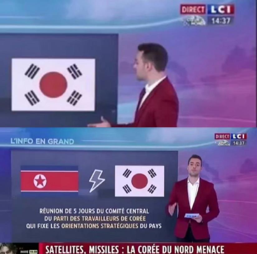这次可以说击碎了韩国自尊心,自以为韩流遍布世界,结果人家法国先是把韩国的名字搞错,接着又把韩国国旗与日本来了一个结合。对此,韩国外交部已经怒不可遏,要求对方立刻纠正错误。但好像没提道歉赔偿的事情,毕竟是G7列强之一嘛。看来,韩国还是懂的看人下菜碟的。