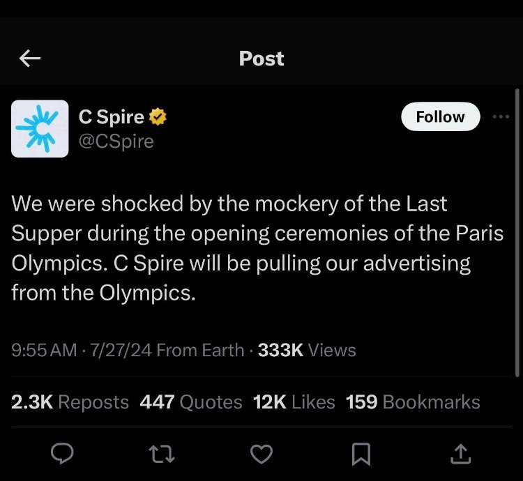 @一玶海岸:#巴黎奥运赞助商回应撤资 ## 奥运开幕式争议导致赞助商撤资# 我调查了下这个赞助商,这个名叫 c spire 的 “赞助商” 也…… 挺一言难尽的。