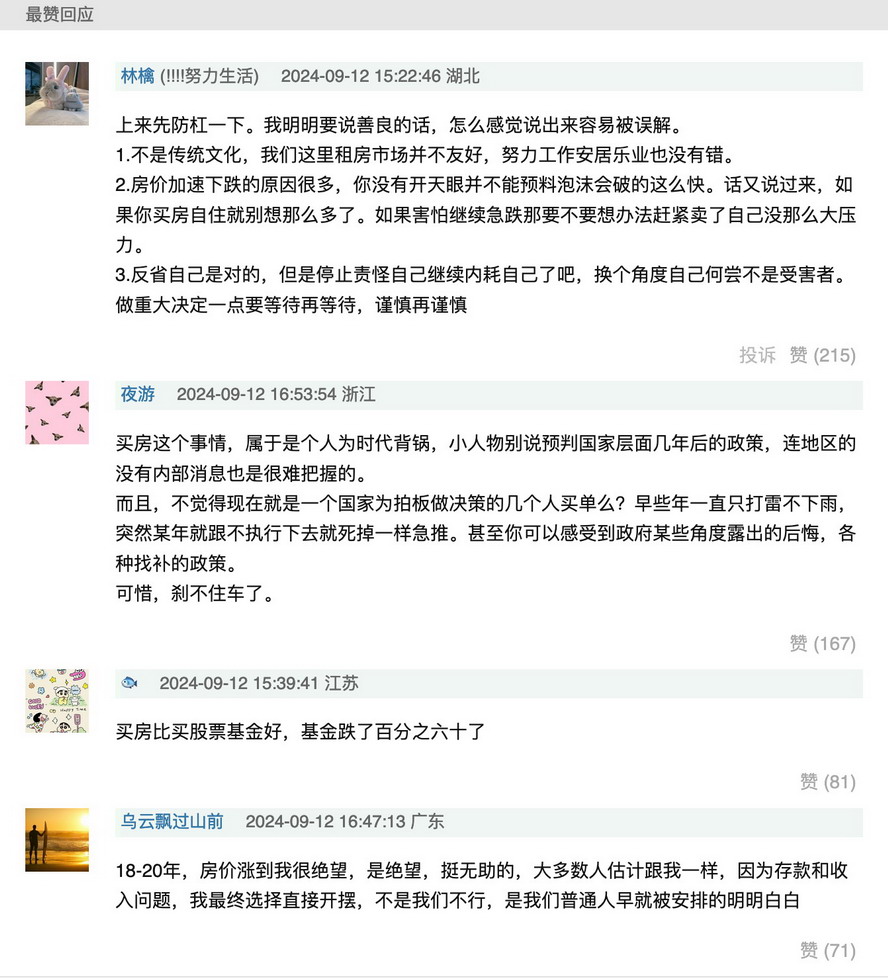 现在此房跌了 80 万,毛估近 4 年亏损超 100 万,一开始会埋怨我老公投机的意念怂恿我去买房,后面我分析到一个巴掌拍不响,这买房的想法虽然是他提出来的,我也有 50% 的责任,我本可以发挥自己的主观能动性去做分析,去说服他。可是我没有,最终是我被他说服,选择侥幸心理,选择偷懒不去思考。